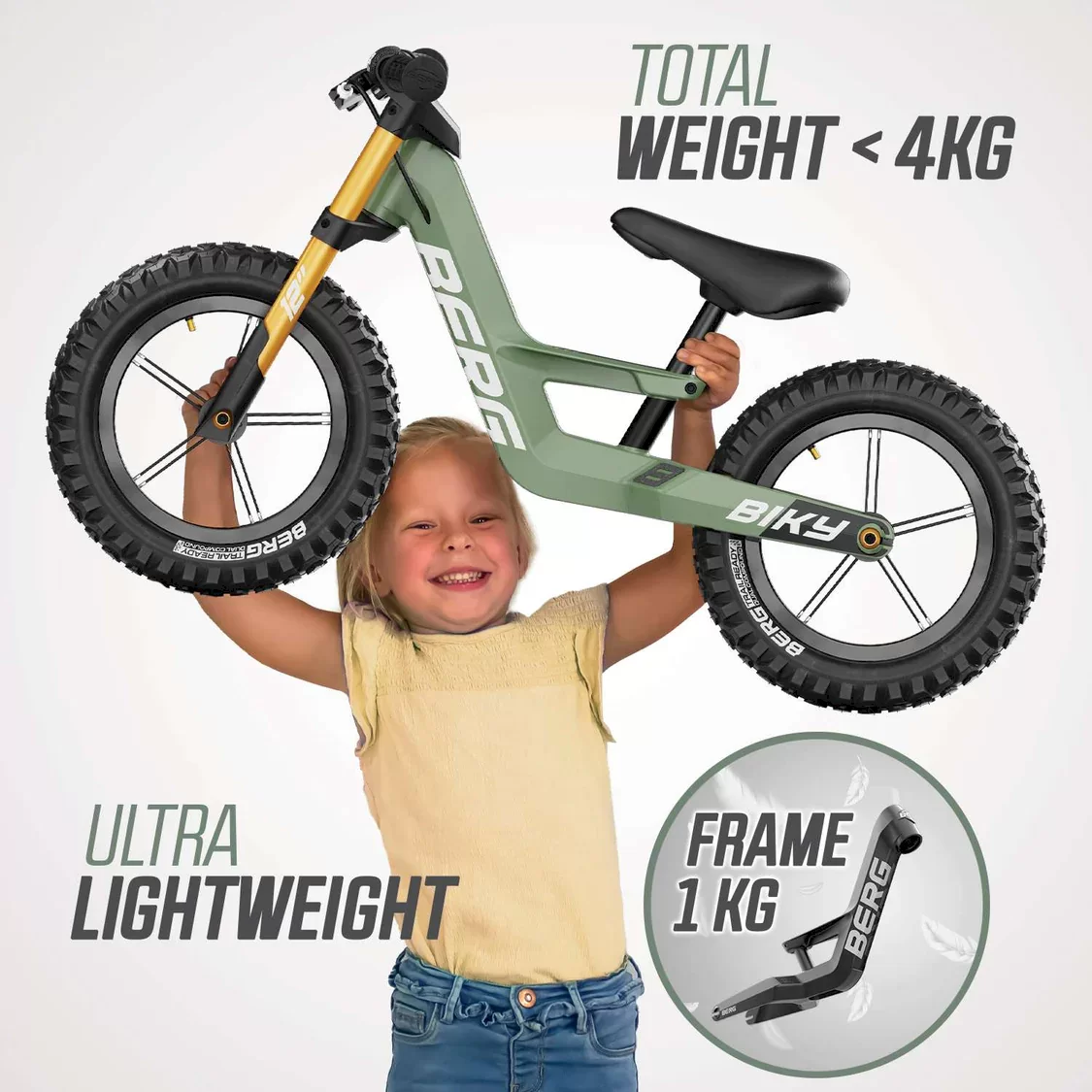 The BERG Biky Cross is an excellently designed balance bike that offers a trilling off-road ride for children from 2 to 5 years old. This award winning bike features super lightweight but exceptionally durable magnesium frame with cool aluminium double fork. By using the latest production techniques and lightweight magnesium, BERG has been able to develop an exceptionally sturdy frame with a very low weight. This makes the bike both easy to handle and great to ride.